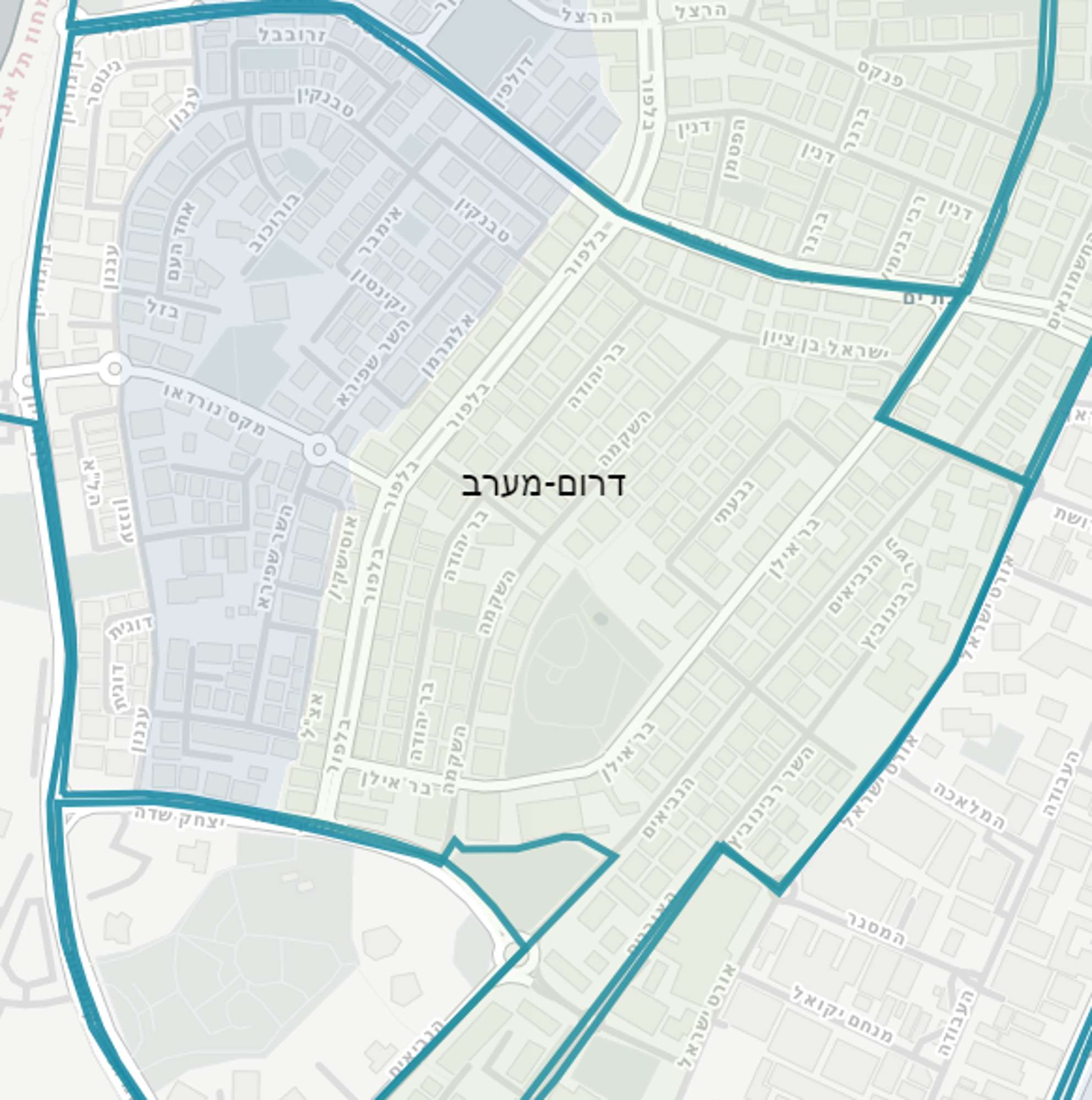 מבחינת מדיניות עירונית לפרויקטים של תמ"א 38, העירייה אישרה בשנת 2013 תכנית המחלקת את העיר לאזורים שונים לפי תוספת קומות וזכויות. באזור דרום-מערב הוגדרו 2 אזורים מרכזיים: באזור המזרחי של השכונה (בצבע ירוק בהיר במפה) תותר תוספת של עד 3 קומות במסלול חיזוק ותוספת או 4 בהריסה ובנייה. באזור המערבי יותר (בצבע כחול) התוספת תוגבל ל-2.5 קומות בחיזוק ותוספת ו-3.5 קומות בהריסה ובנייה. נראה כי בצירים הראשיים יוספטל ובלפור תהיה עדיפות לפרויקטים של פינוי-בינוי המאפשרים הריסת דירות ובניית מגדלים גבוהים. באזור הסמוך לים, מגדירה תכנית המתאר של העיר, הנמצאת בשלבי תכנון, בנייה של עד 25 קומות במסגרת פינוי-בינוי.