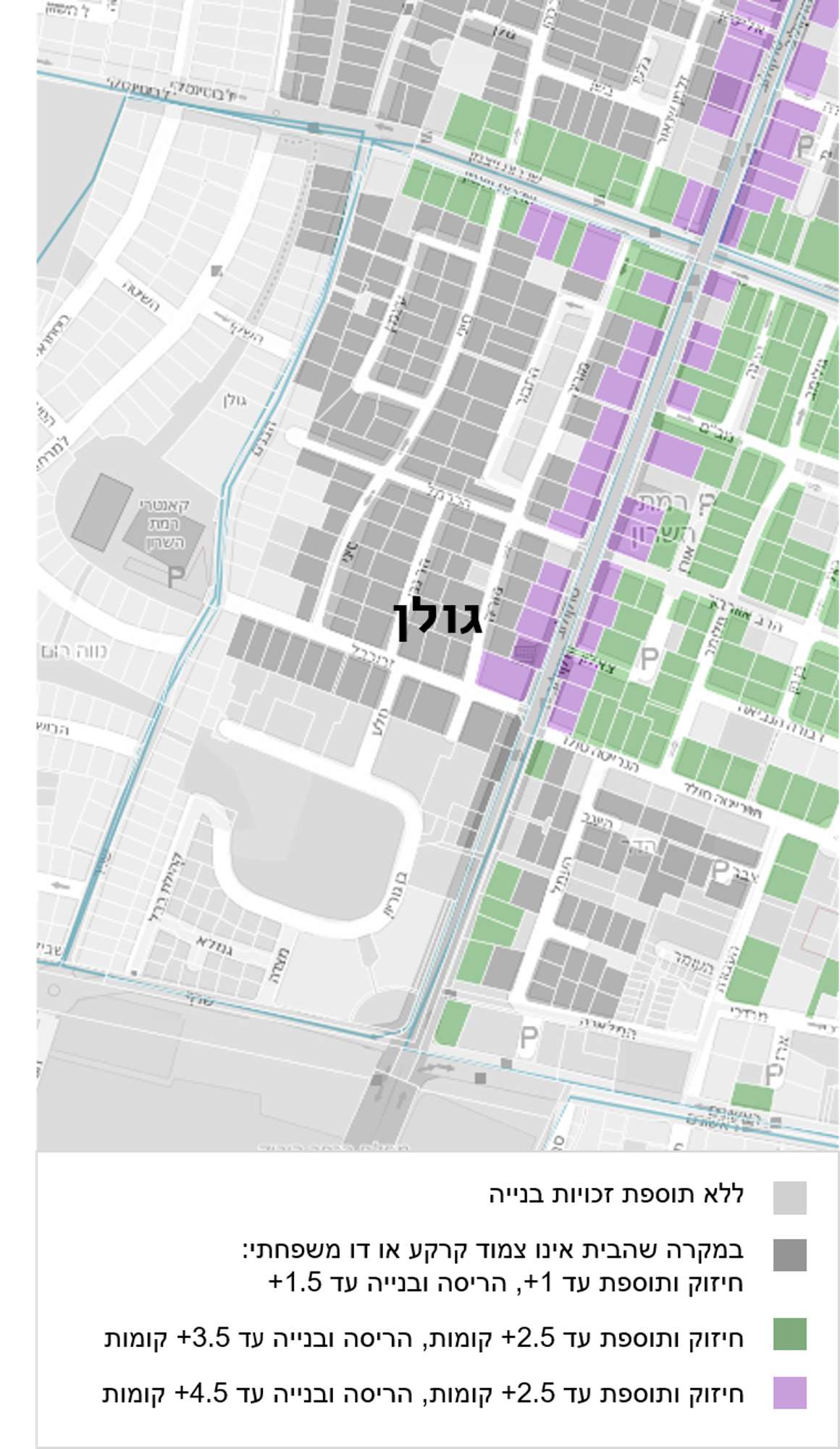 מיפוי זכויות הבנייה הצפויות על פי התכנית החדשה