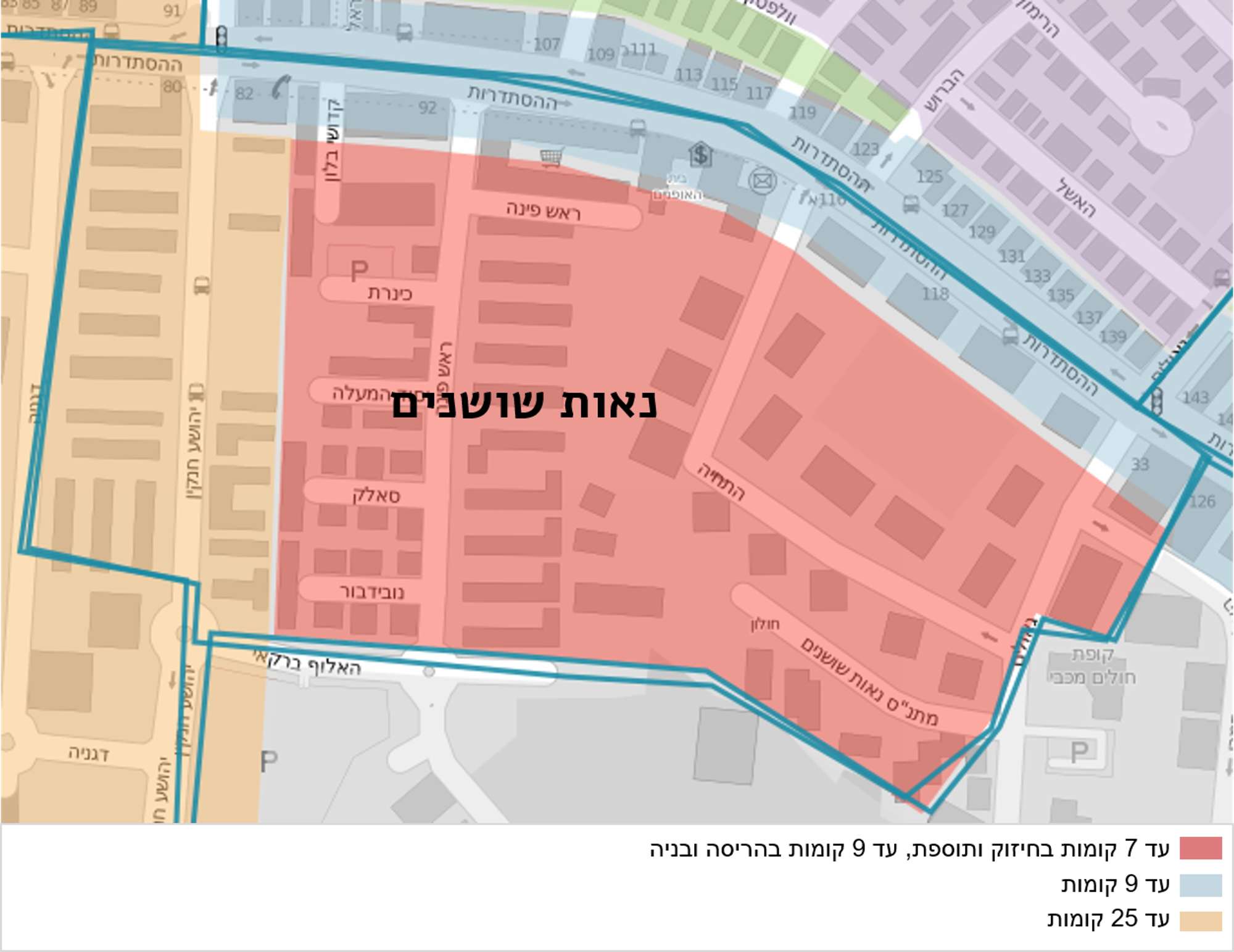 מיפוי גובה בנייה עתידי על פי תכנית המתאר המתגבשת